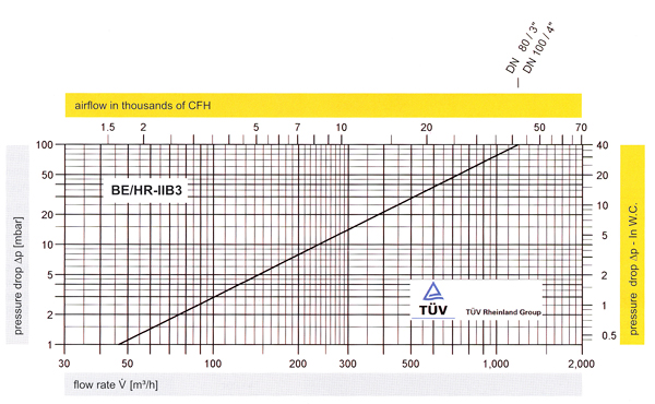 圧力損失カーブ: 爆発グループIIB3